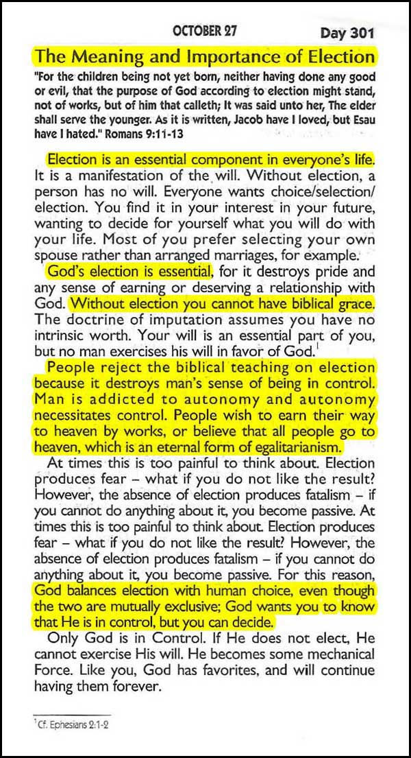 “People reject the biblical teaching on election, because it destroys man’s sense of being in control.”