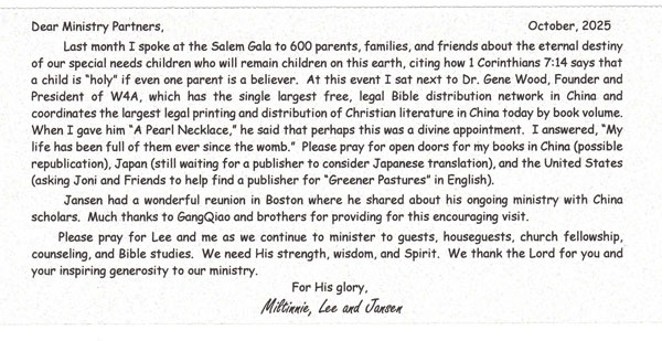 Check out the update from Miltinnie Yih. The Chinese people that are being impacted by her book, A Pearl Necklace, is astounding.
