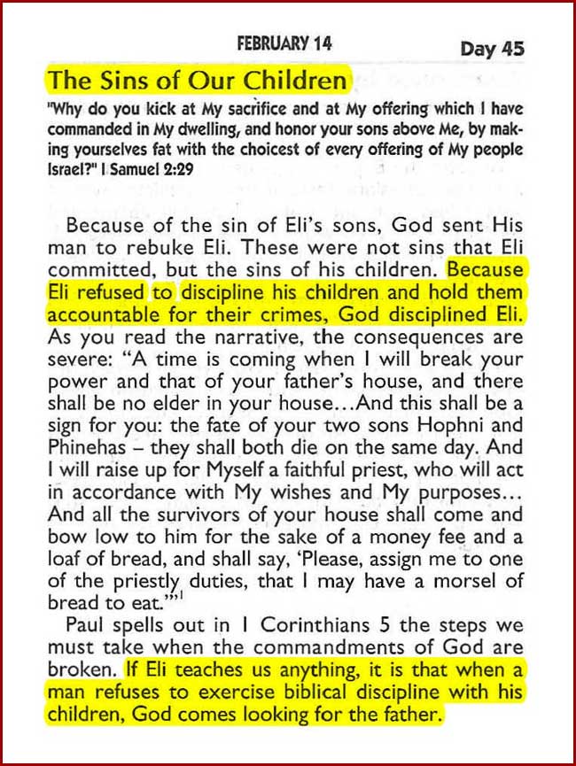 “…..when a man refuses to exercise biblical discipline with his children, God comes looking for the father.”