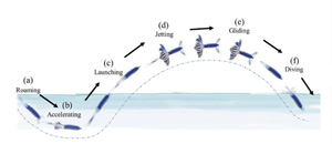 The squid is not simply gliding. While airborne it continues jetting water, accelerating itself even after leaving the ocean.